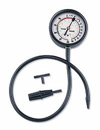 This vacuum gauge provides an easy and efficient means of checking the engine vacuum or testing fuel pump operation. It helps to identify and diagnose system vacuum leaks and problems in the engine, and the various vacuum-operated motors and accessories. It accurately checks system fuel pressure on vehicles that are equipped with carburetors and features a 3 1/2-in easy-to-read face, a 24-in oil-resistant rubber hose with a universal fitting adaptor, a tapered adapter, and a tee connector.