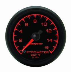 Auto Meter 2-1/16 inch (52.4mm) Pyrometer E.G.T. (Exhaust Gas Temperature), 0-1600`F, Full Sweep Electric, ES are powered by digital microprocessor-controlled, rugged stepper motor drives and laboratory grade sending units. These Full Sweep Electric Gauges are the BEST gauges available. They combine Extreme Durability and Readability of 270 degree sweep mechanical gauges with the easy installation and safe operation of short sweep electrics. Track tested and race proven, these units use precision senders to keep hazardous fluids out of the driver compartment and perform gauge calibration and sensor diagnostics at power up for extreme accuracy, every time. Most units compatible with Auto Meter Data Logger for the ultimate race info center. Full Sweep, Stepper Motor meter movement. Air-Core meter movement. Includes Type K Thermocouple.